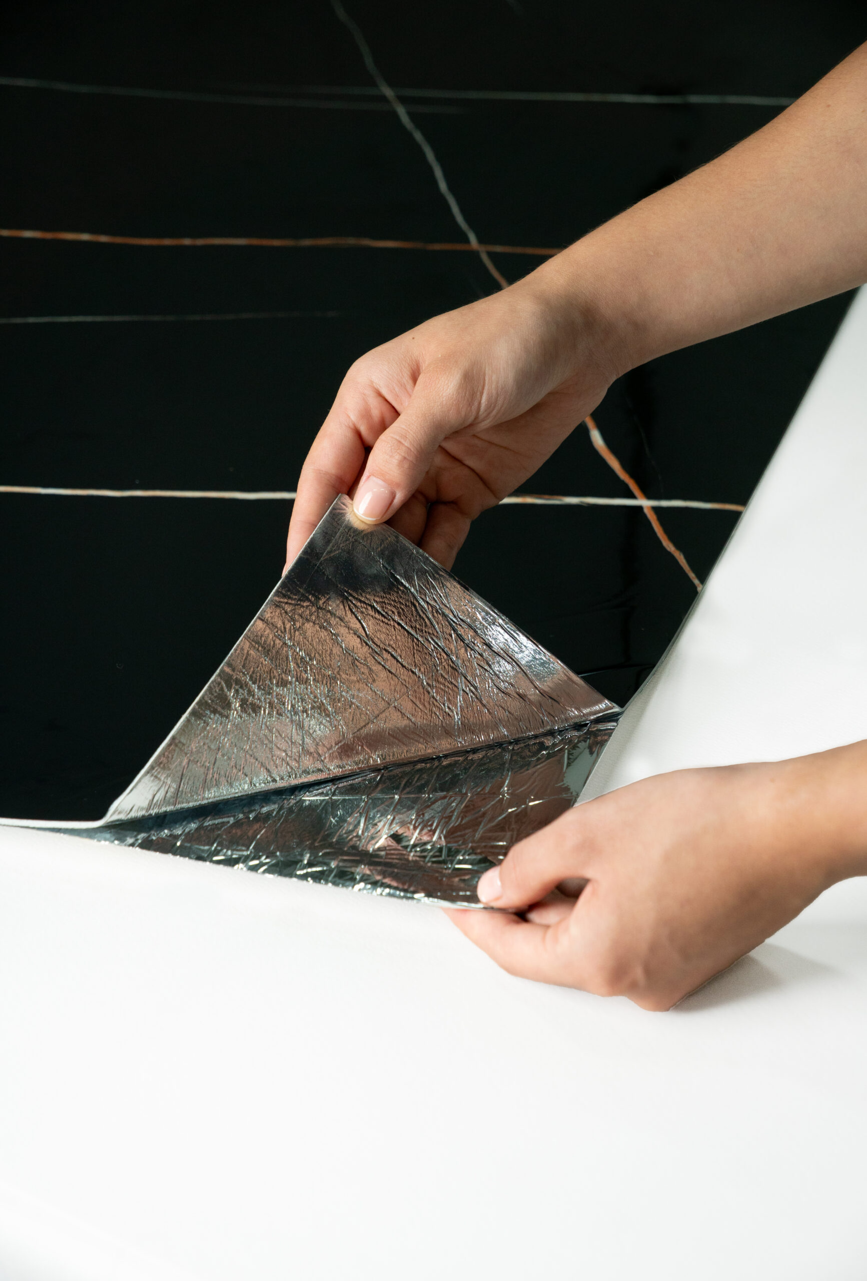 Gran Formato y Poco Espesor: Con solo 2mm de grosor, son fáciles de cortar y adaptar a esquinas o columnas sin añadir peso estructural.